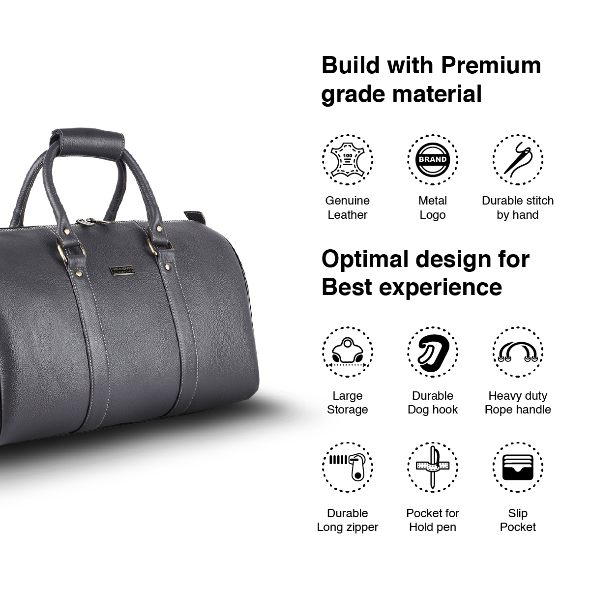 Duffle Bag for Travel - Genuine Leather Travel Bag for Luggage - Ideal Cabin Weekender Bag - Spacious, Stylish and Durable
