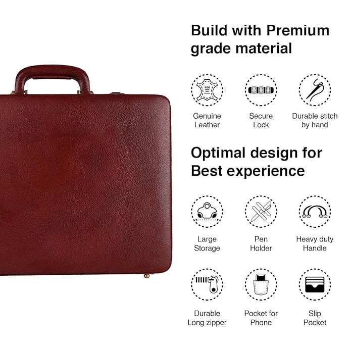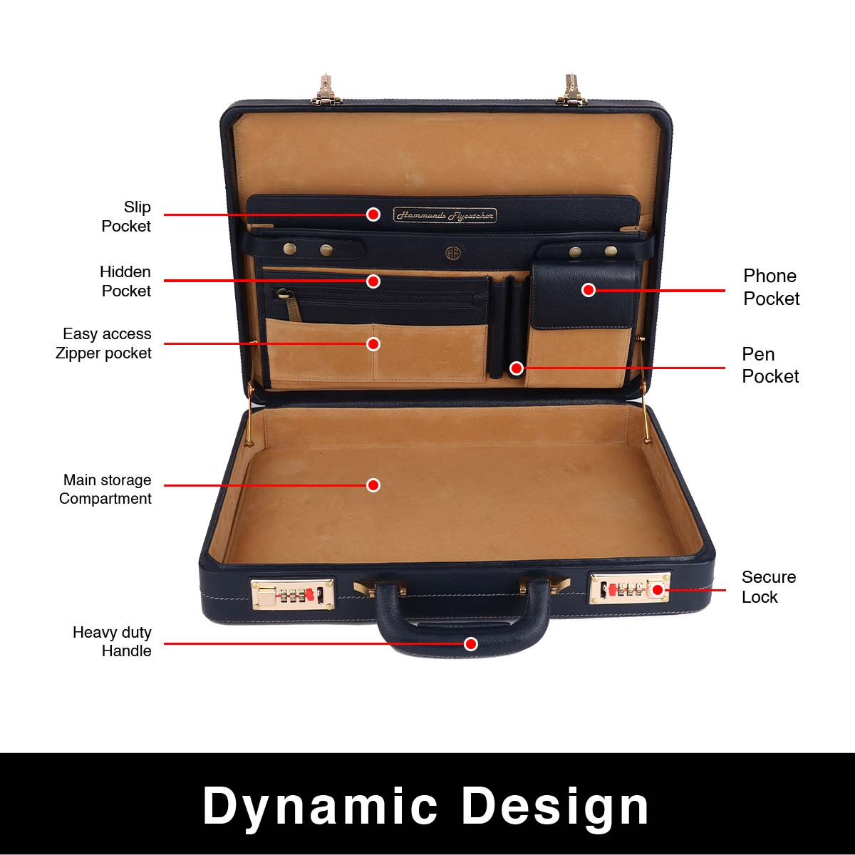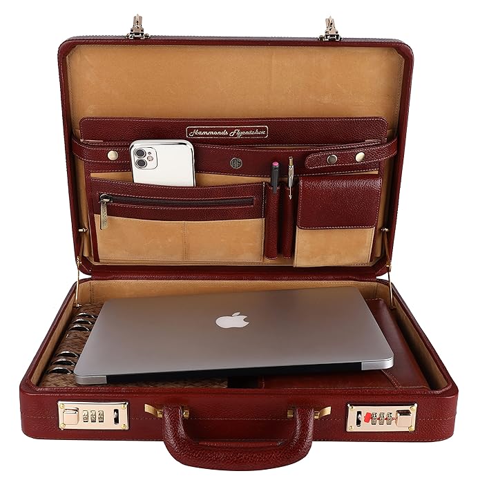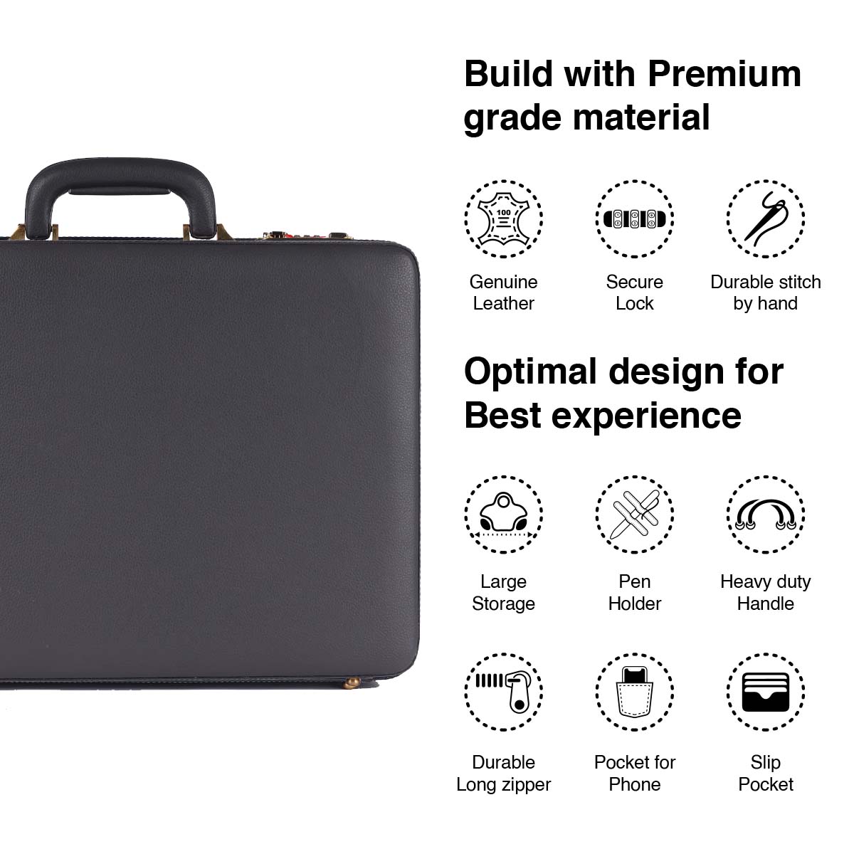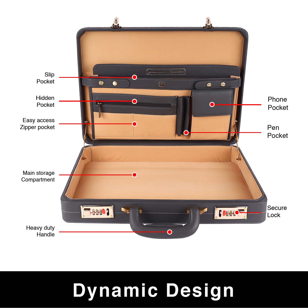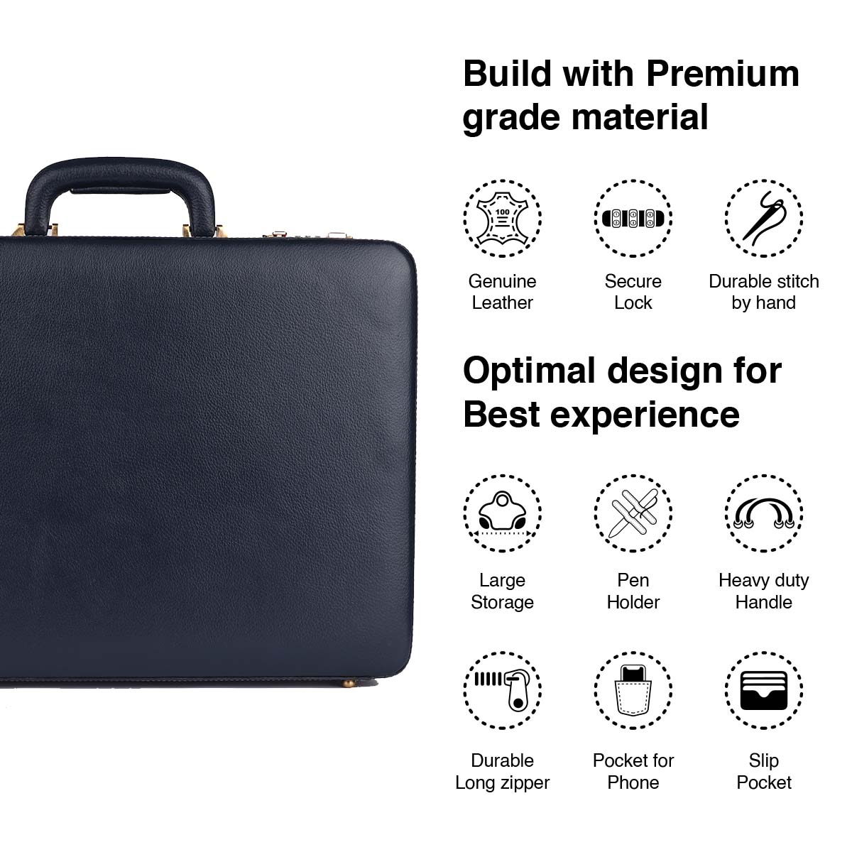 Leather Briefcase for Men - Executive Bag for Business & Travel with Combination Lock and Multiple Compartments